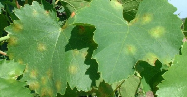 Bağ yaprağını koparıp güneşe tuttuğunuzda yukarıdaki resimdeki gibi sarı lekeler varsa bağınızda mildiyo hastalığı başlamış demektir.
